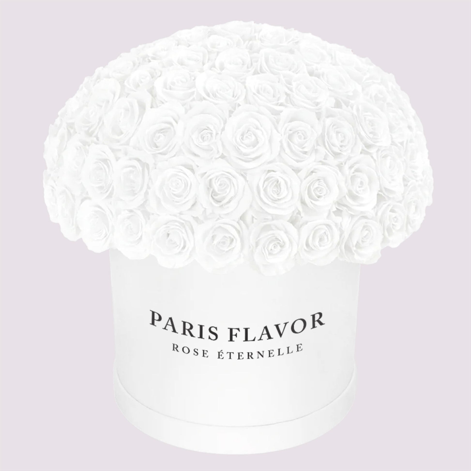 Offrez une attention inoubliable avec cet arrangement luxueux de roses éternelles, soigneusement préservées et disposées dans une somptueuse boîte ronde. Plus qu'un simple cadeau, ces roses incarnent l'audace et le raffinement, symbolisant amour, amitié et complicité. Leur beauté intemporelle durera bien au-delà du moment, pour laisser une empreinte durable sur votre relation.
